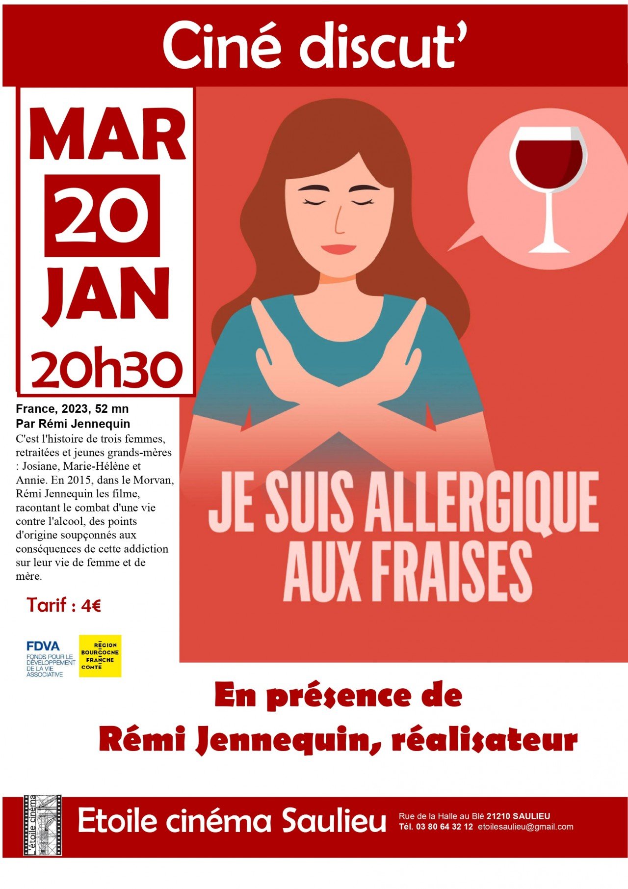 Cinéma Etoile Saulieu, 20 rue de la Halle au Blé, 21210 Saulieu | Mentions légales | Contact | Tel : 03 80 64 32 12